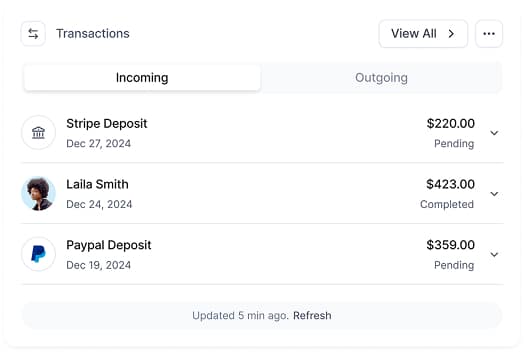 Monitor all incoming and outgoing transactions in real-time and stay on top of your cash flow, Wether you’re tracking customer payments or monitoring vendor invoices.